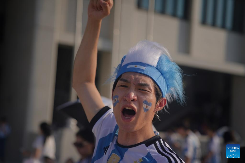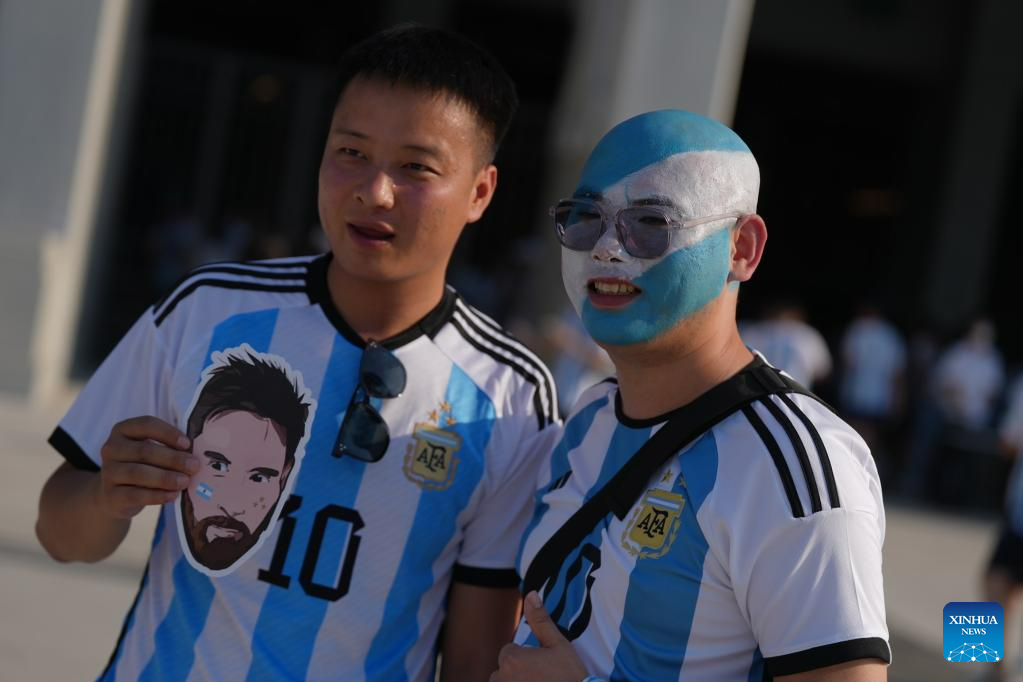 Fans are seen ahead of an international football invitational between Argentina and Australia in Beijing, capital of China, June 15, 2023. (Xinhua/Zhang Chen)