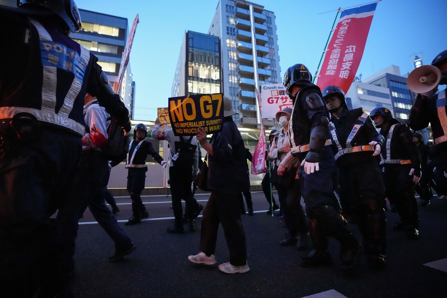 Protesters rally in a protest against the upcoming Group of Seven (G7) summit, in Hiroshima, Japan, May 17, 2023. (Xinhua/Zhang Xiaoyu)