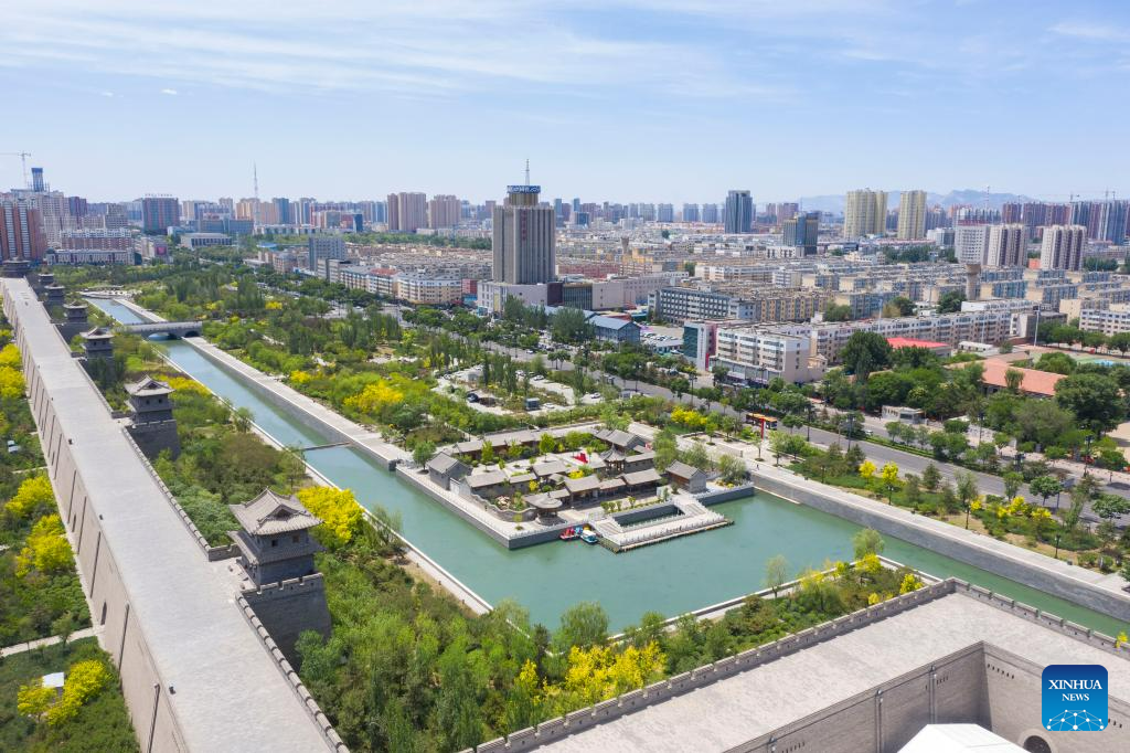 This photo taken on June 8, 2023 shows a view of Datong ancient town in Datong, north China's Shanxi Province. Datong, with a history of over 2,000 years, is one of China's ancient capitals. In recent years, Datong has developed its tourism combining rich cultural heritages and well-known attractions. The historic city is shining with a new vitality. (Xinhua/Yang Chenguang)