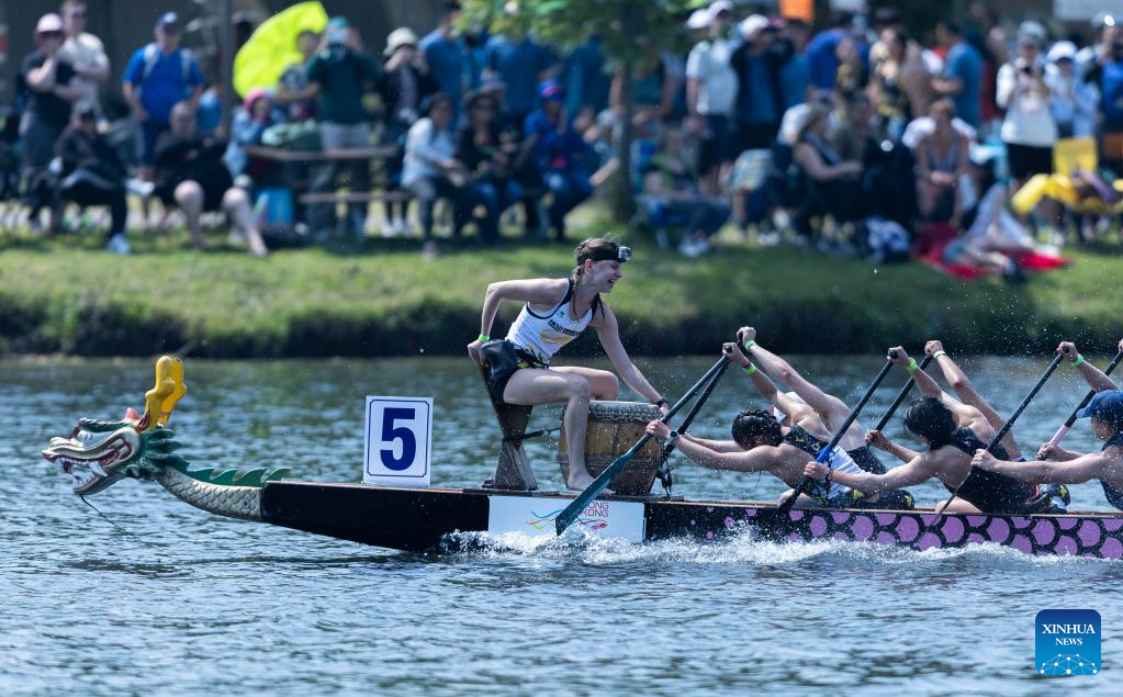 Participants compete during the 2023 Toronto International Dragon Boat Race Festival in Toronto, Canada, on June 17, 2023. This annual two-day event kicked off here on Saturday with hundreds of participants from around the world participating. (Photo by Zou Zheng/Xinhua)