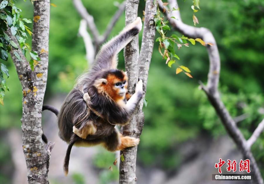 Golden snub-nosed monkeys play at Baihe National Nature Reserve in Jiuzhaigou County, Aba Prefecture, southwest China's Sichuan Province, June 17, 2023. (Photo: China News Service/An Yuan)