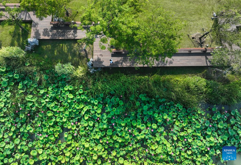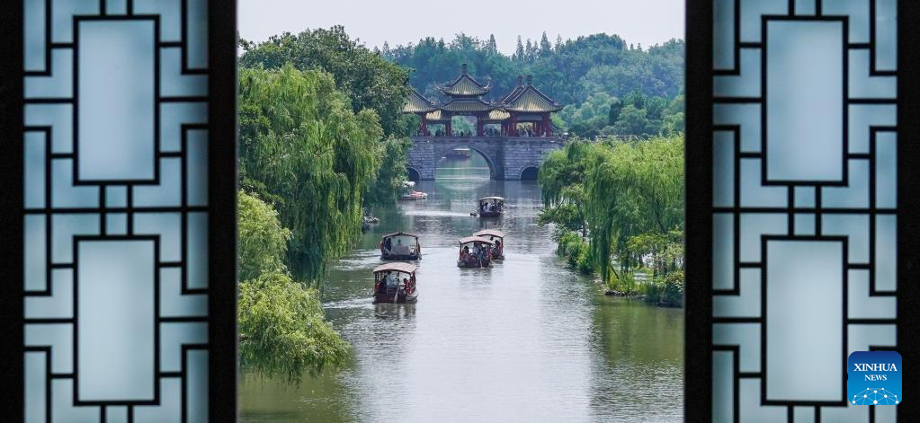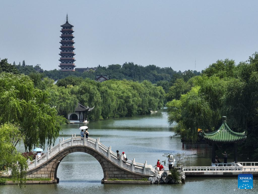 This photo taken on June 15, 2023 shows a view of the Slender West Lake scenic spot in Yangzhou, east China's Jiangsu Province. (Xinhua/Ji Chunpeng)