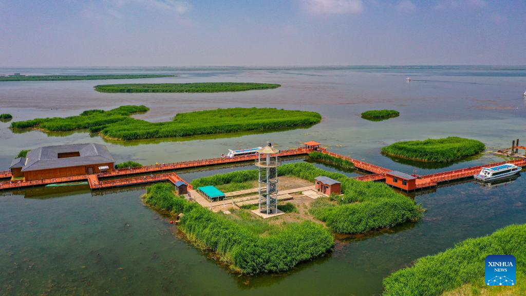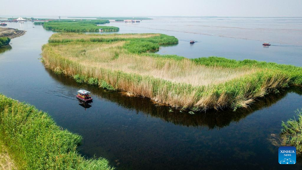This aerial photo taken on June 19, 2023 shows the Wuliangsu Lake in Bayannur, north China's Inner Mongolia Autonomous Region. (Xinhua/Peng Yuan)
