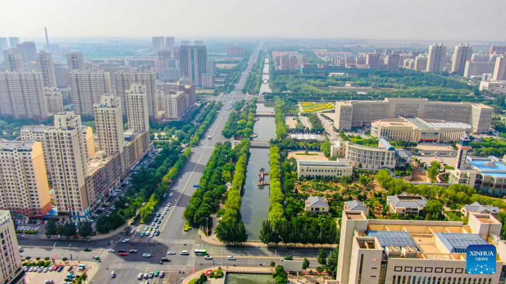 This aerial photo taken on June 19, 2023 shows the city view of Bayannur, north China's Inner Mongolia Autonomous Region. (Xinhua/Peng Yuan)