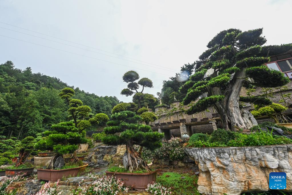 Potted plants are seen in Dayuan Village of Chisong Town in Jindong District of Jinhua City, east China's Zhejiang Province, June 20, 2023. Based on the integration of tourism and agriculture, Jindong District has fostered a rural industrial development belt among its administrative villages with local distinctive industries. (Xinhua/Xu Yu)