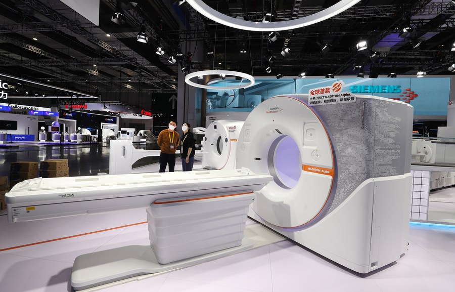 This photo taken on Nov. 2, 2022 shows a medical device of German company Siemens to be displayed in the fifth China International Import Expo (CIIE) in Shanghai, east China. (Xinhua/Fang Zhe)