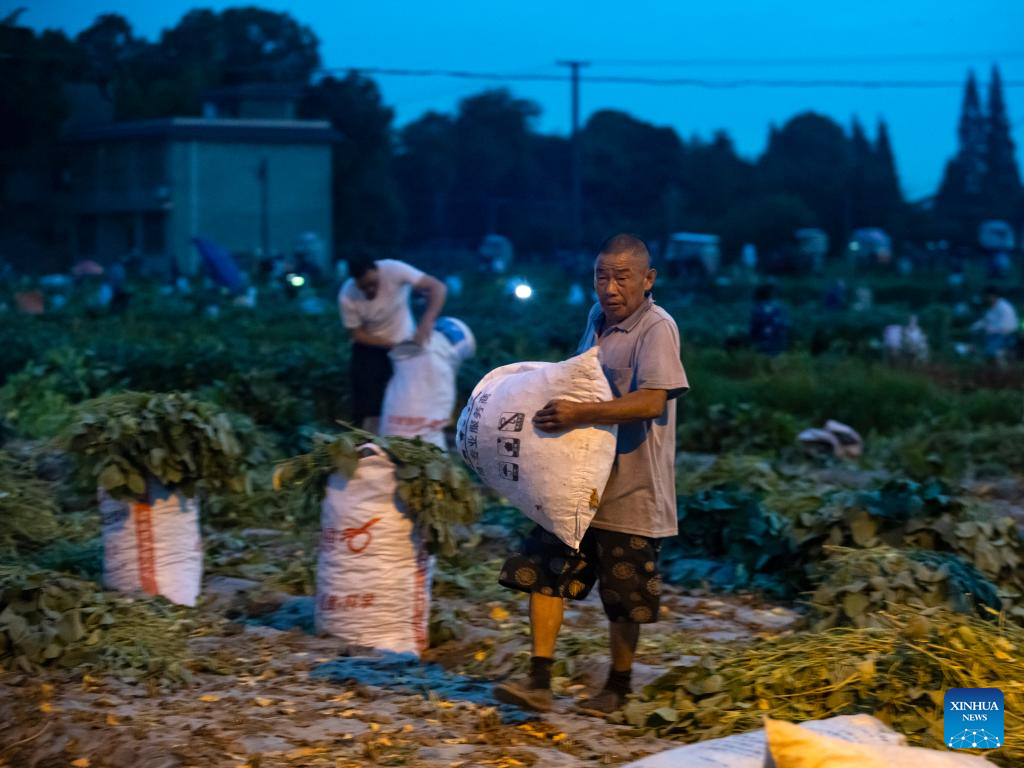 Local green soybeans have entered the harvest season in recent days, which are sent from fields to people's tables through a series of processing in half a day. (Xinhua/Shen Bohan)