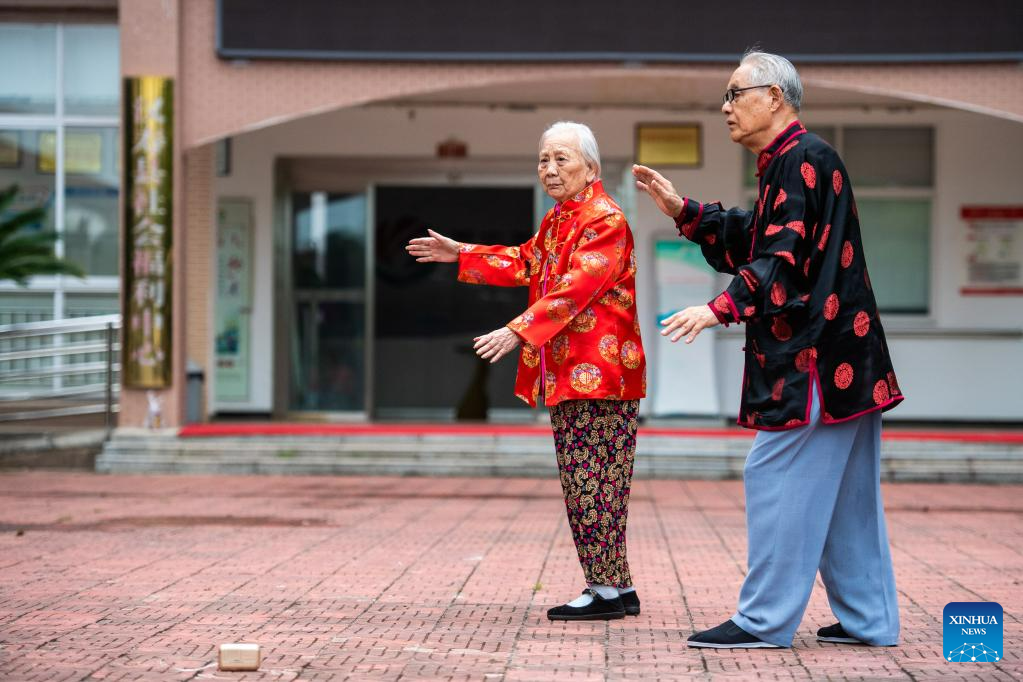 Senior residents practice Taichi at a social welfare center in Hanshou County of Changde City, central China's Hunan Province, June 20, 2023.