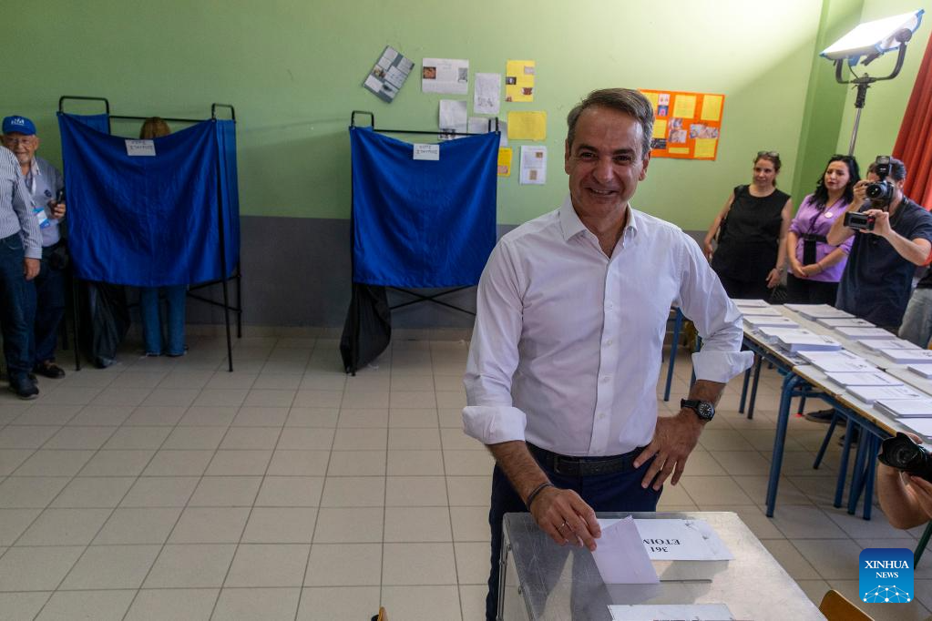 Kyriakos Mitsotakis, leader of Greece's conservative New Democracy (ND) party, casts his ballot at a polling station in Athens, Greece, June 25, 2023. A second general election was held in Greece on Sunday. (Photo by Marios Lolos/Xinhua)