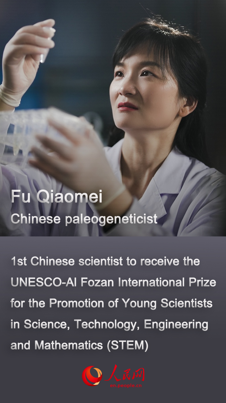 Chinese scientist Fu Qiaomei was awarded a UNESCO prize in Paris, France on Monday for her original work on establishing the genetic history of early humans on the Eurasian continent through the study of ancient genomes.