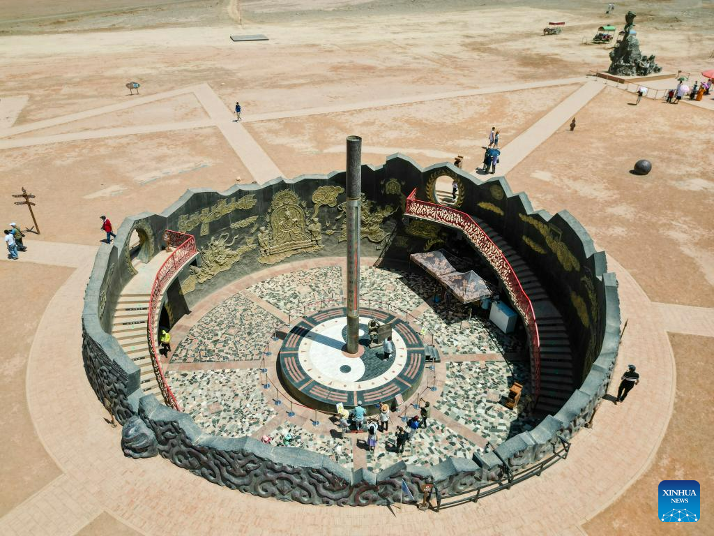In this aerial photo, tourists visit the Jiaohe Ruins, a world cultural heritage site, in Turpan, northwest China's Xinjiang Uygur Autonomous Region, June 25, 2023.
