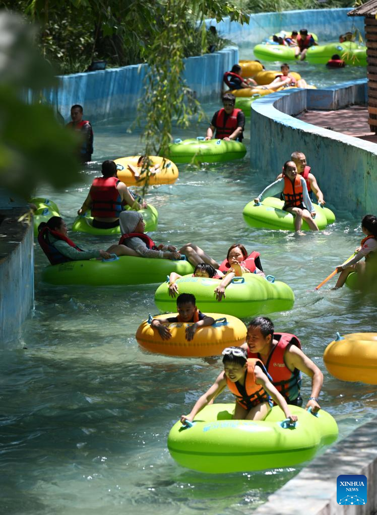 People have fun at a water amusement park in Shijiazhuang, north China's Hebei Province, June 29, 2023. (Photo by Chen Qibao/Xinhua)