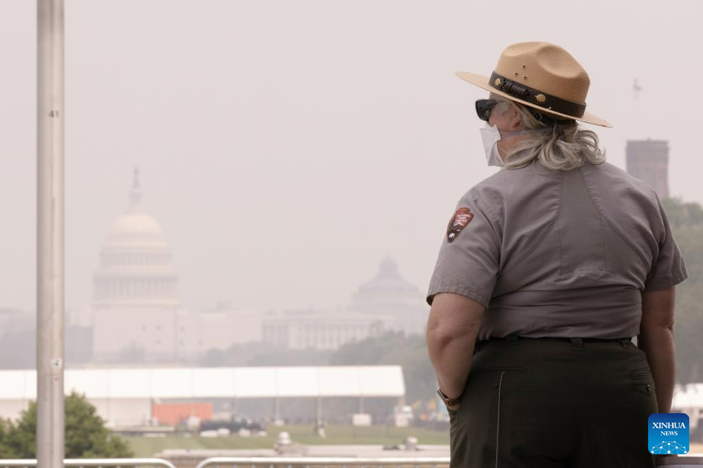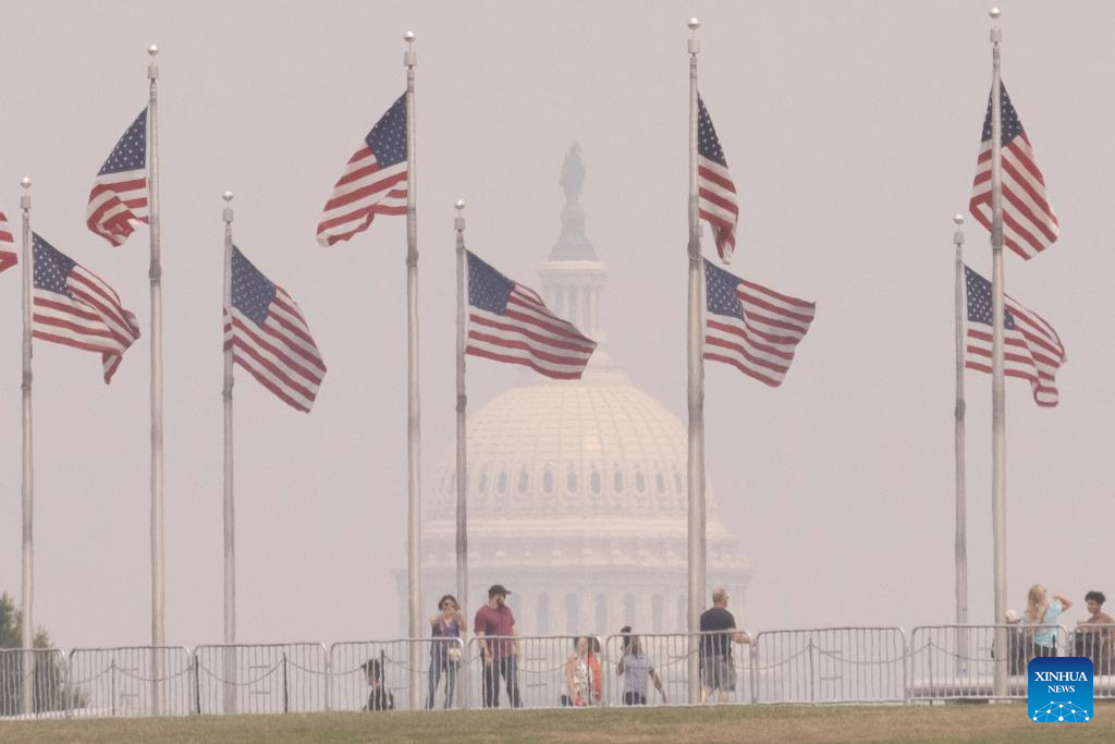 The U.S. Capitol building is shrouded in haze in Washington, D.C., the United States, on June 29, 2023. (Xinhua/Liu Jie)