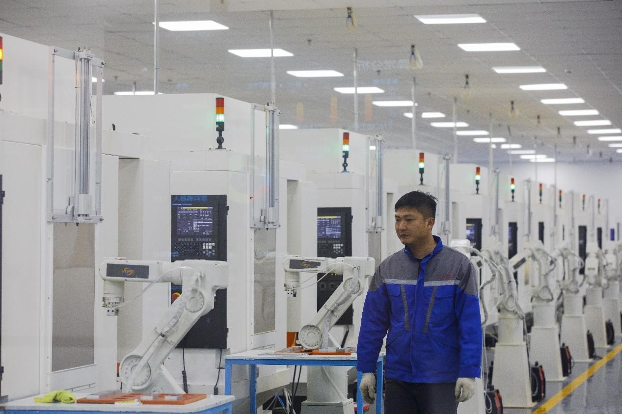 A worker inspects an automated workshop in Yancheng, east China's Jiangsu province. (People's Daily Online/Chai Junwei)
