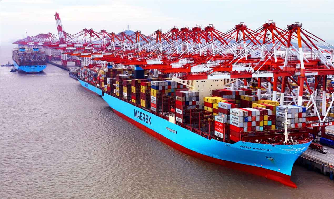 Photo taken on June 25, 2023 shows super-large container ships at a container terminal of Shanghai Yangshan Deep Water Port in east China's Shanghai. (Photo by Ji Haixin/People's Daily Online)