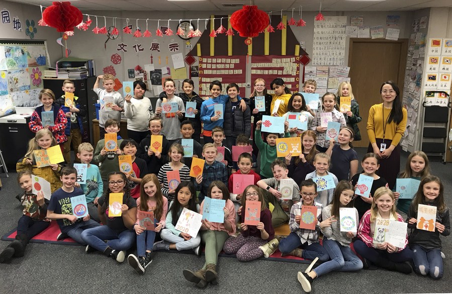 Cascade Elementary School students show their Happy Chinese New Year cards made for Chinese President Xi Jinping, in the town of Orem in the U.S. state of Utah, on Jan. 21, 2020. (Xinhua)