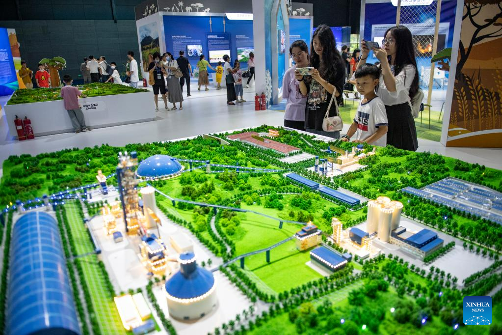 People visit the China-Africa Achievement Exhibition on High-Level Building of the Belt and Road Initiative during the third China-Africa Economic and Trade Expo in Changsha, central China's Hunan Province, July 1, 2023. The third China-Africa Economic and Trade Expo is held in Changsha from June 29 to July 2. (Xinhua/Sun Ruibo)