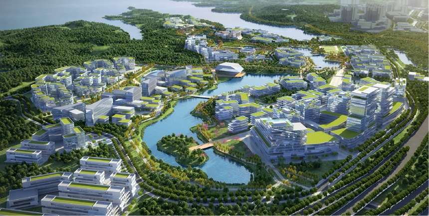 A rendering of the Jiuwei International Headquarters Area in Bao'an district, Shenzhen city, south China's Guangdong Province. (Photo courtesy of the publicity department of the Party committee in Bao'an district of Shenzhen)