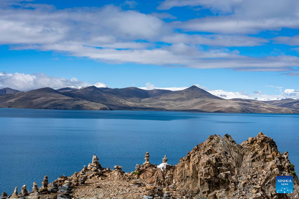 This photo taken on July 4, 2023 shows a view of the Puma Yumco Lake in Nagarze County of Shannan, southwest China's Tibet Autonomous Region. (Xinhua/Sun Fei)