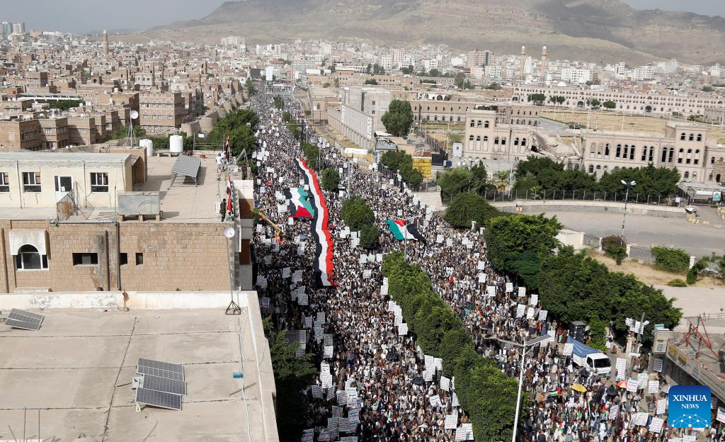 SANAA, July 4 (Xinhua) -- Thousands of people rallied in Yemen's rebel-held capital of Sanaa on Tuesday to protest against an Israeli raid on the Jenin refugee camp in the West Bank.