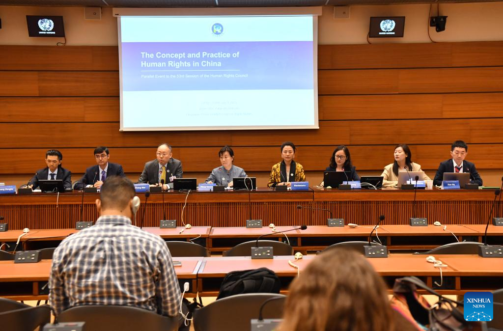 GENEVA, July 4 (Xinhua) -- During the ongoing 53rd session of the United Nations (UN) Human Rights Council, the China Society for Human Rights Studies on Monday held a side event at which experts detailed the concept and practices of human rights in China, at the Palais des Nations here.