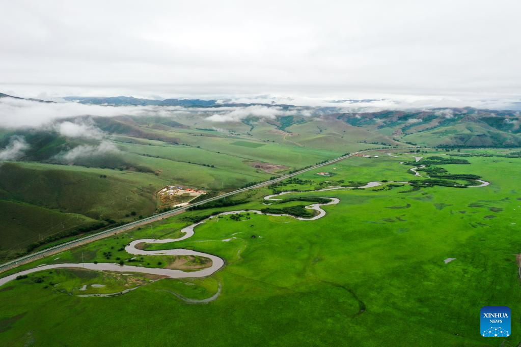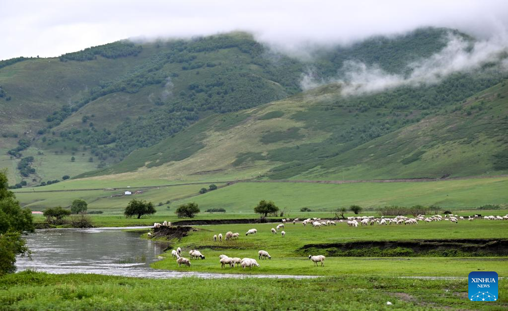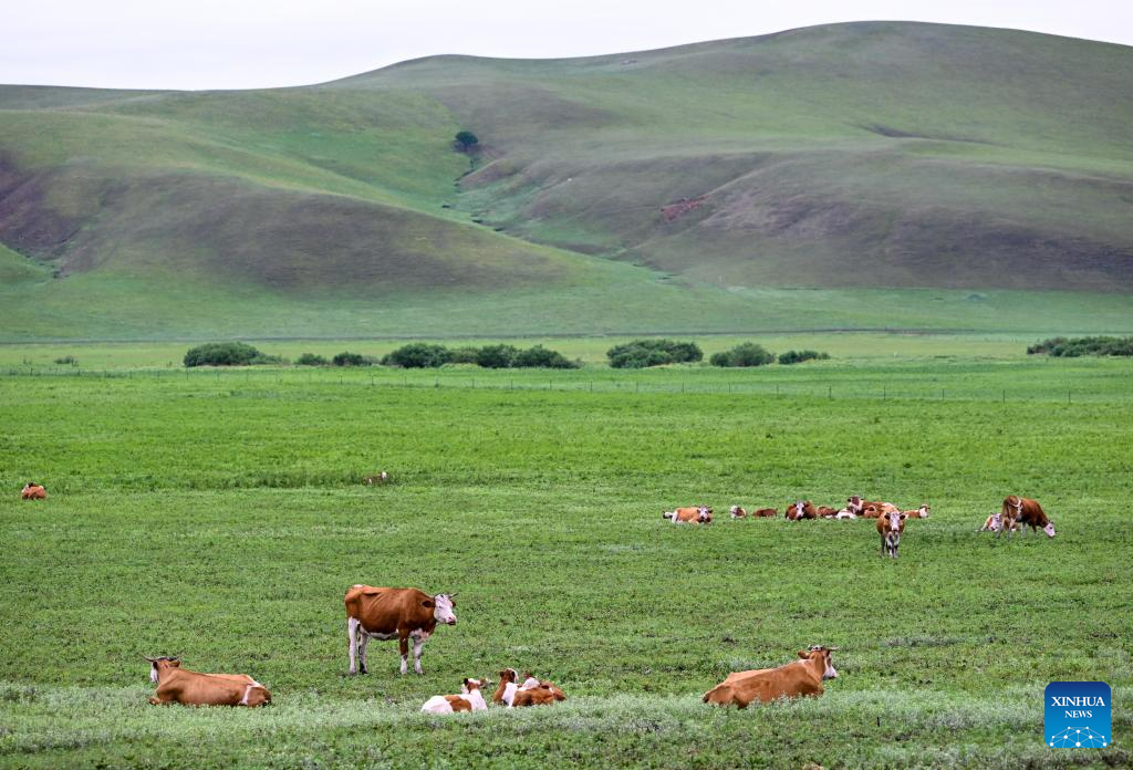 This photo taken on July 5, 2023 shows the summer scenery of the Ulan Mod grassland in Horqin Right Wing Front Banner of Hinggan League, north China's Inner Mongolia Autonomous Region. (Xinhua/Bei He)