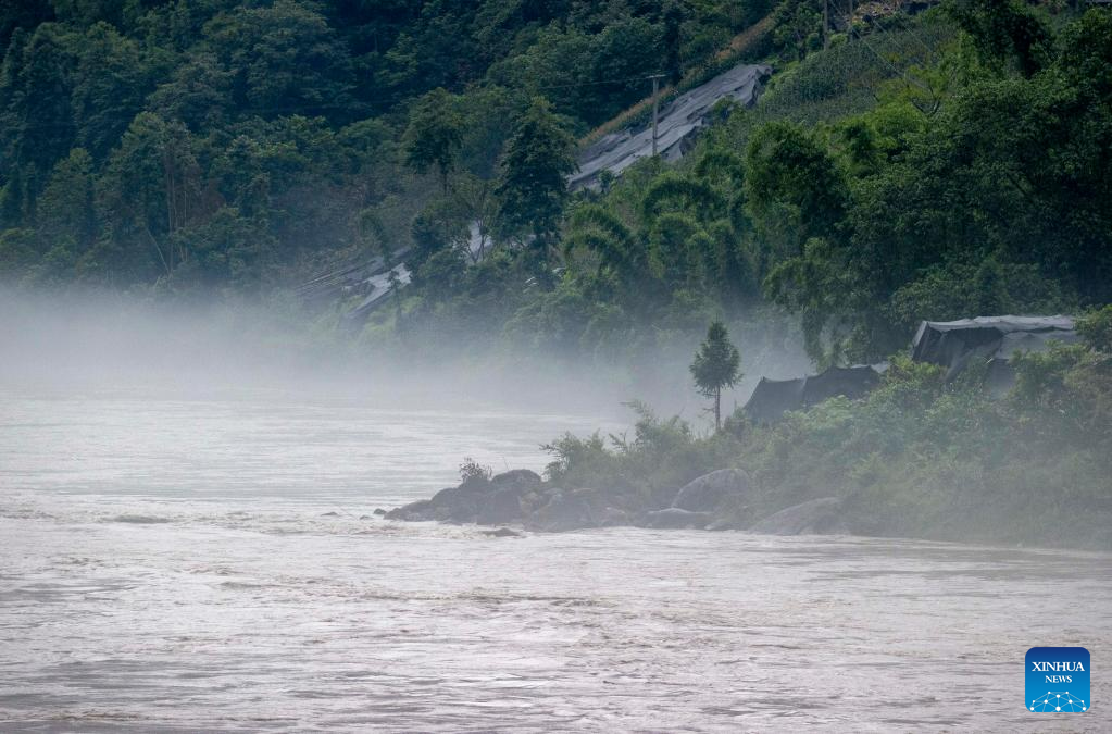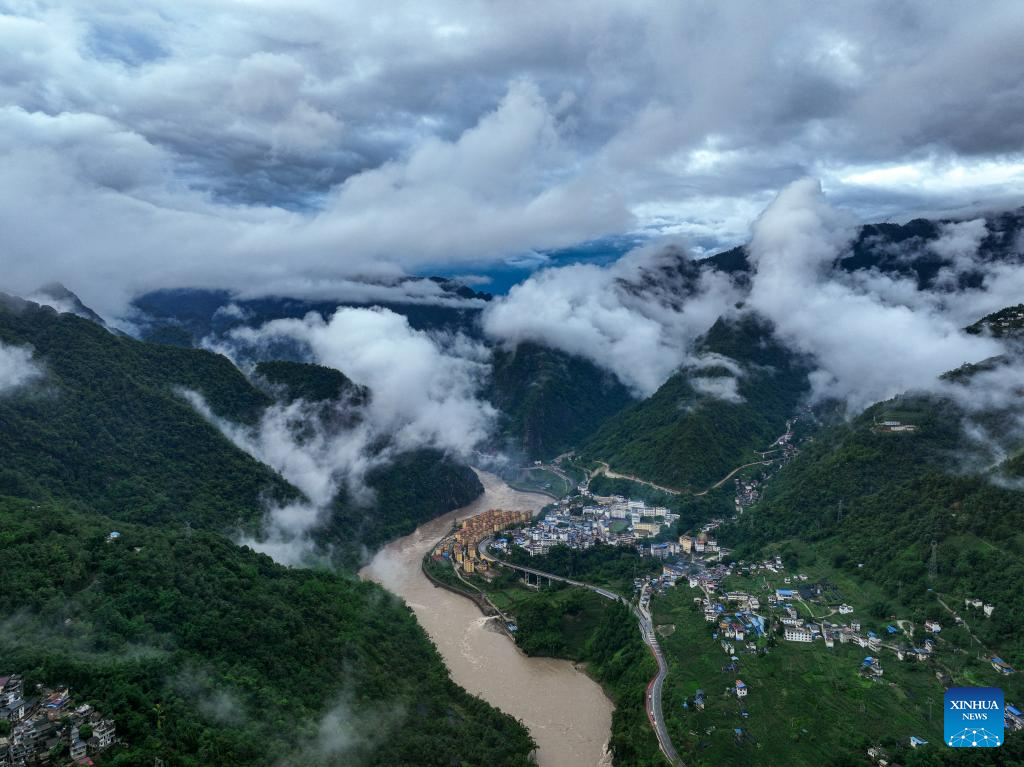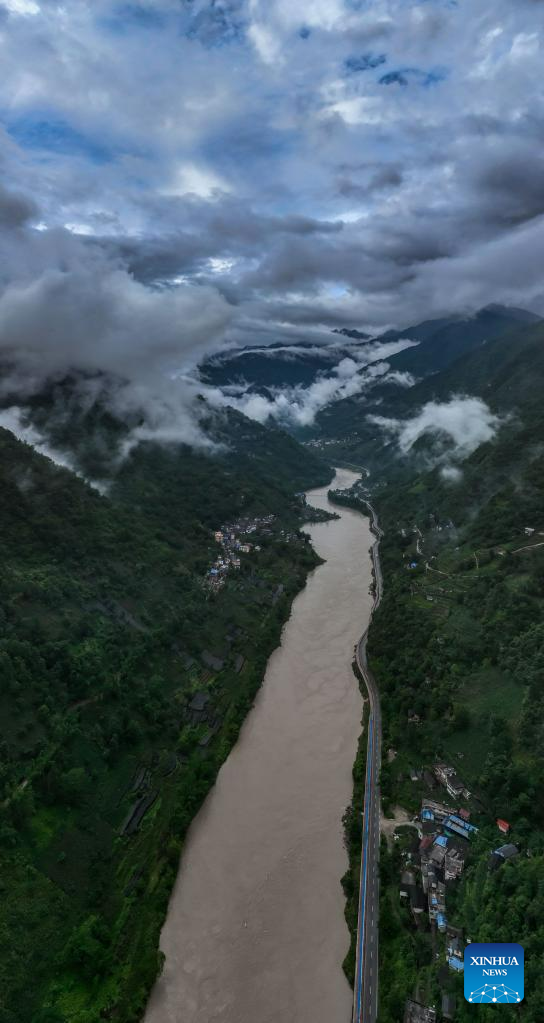 This photo taken on July 4, 2023 shows the scenery of the Nujiang River in Nujiang Lisu Autonomous Prefecture, southwest China's Yunnan Province. (Xinhua/Yang Zhisen)