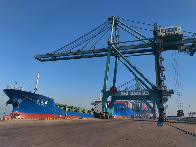 Cargo ships are loaded at Huanghua port in Cangzhou, north China's Hebei Province. (People's Daily Online/Zhou Bo)