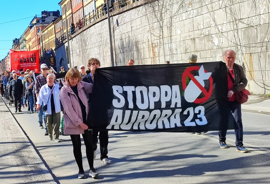 "Military alliances do not build peace. Military rearmament, on the contrary, creates the conditions for war," a protester said in Sweden.