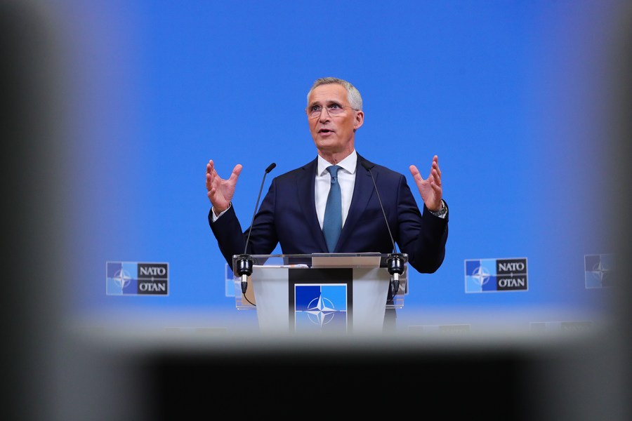 NATO Secretary-General Jens Stoltenberg speaks at a press conference to preview the NATO Summit in Vilnius, at the NATO headquarters in Brussels, Belgium, July 7, 2023. (Xinhua/Zheng Huansong)
