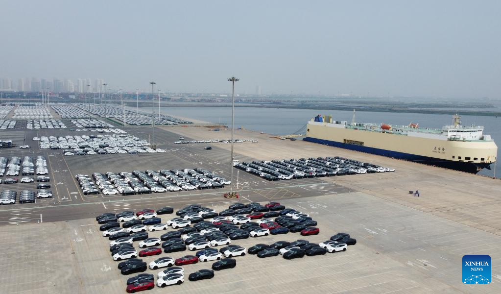 Photo taken on July 7, 2023 shows vehicles at a ro-ro dock of Tianjin Port in north China's Tianjin. (Xinhua/Zhao Zishuo)