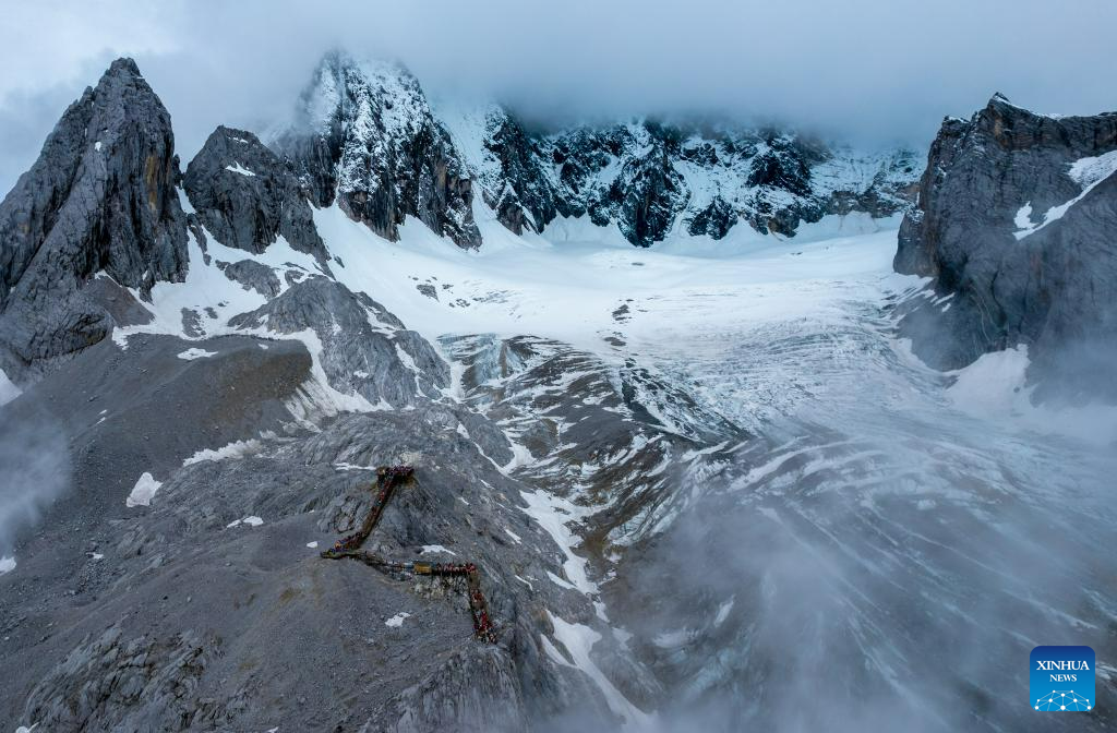 This photo taken on June 19, 2023 shows a view of the Baishui River No. 1 Glacier on the Yulong Snow Mountain in Lijiang City, southwest China's Yunnan Province. (Xinhua/Tian Weiwei)