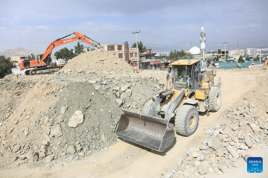 This photo taken on July 9, 2023 shows the construction site of a road in Kabul, capital of Afghanistan. Afghan Acting Minister for Foreign Affairs Mawlawi Amir Khan Muttaqi has downplayed the reports on the economic crisis, saying the economy of Afghanistan has been moving on the right track, reported the state-run Bakhtar News Agency on Sunday. (Photo by Saifurahman Safi/Xinhua)