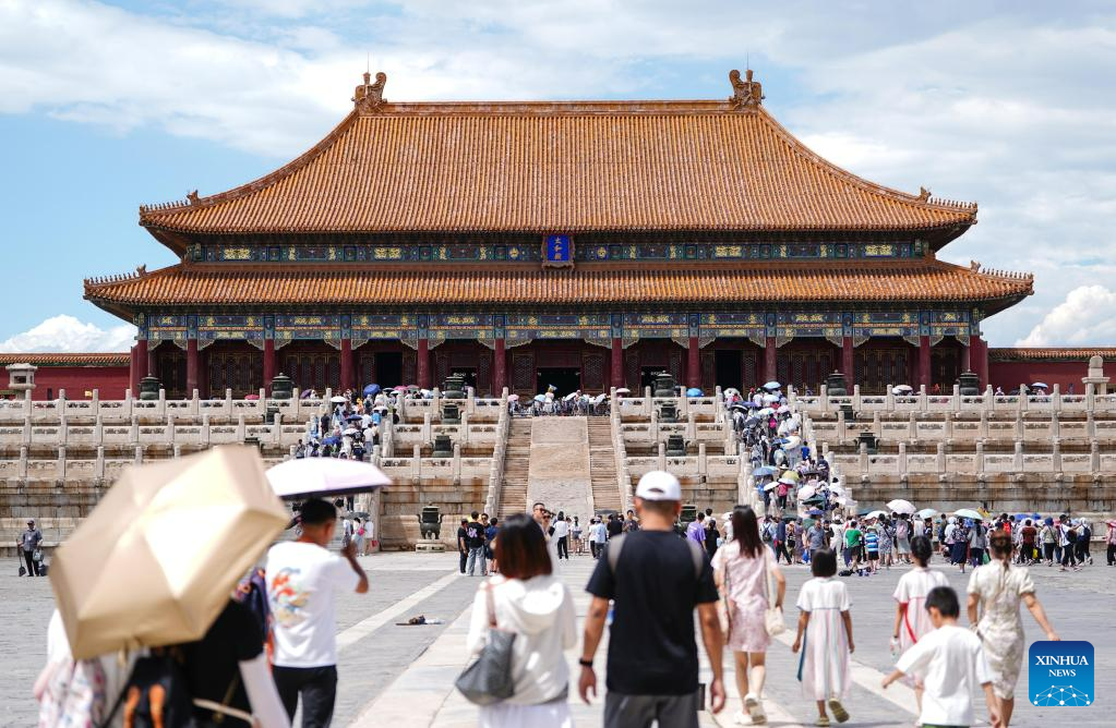 Tourists visit the Palace Museum, also known as the Forbidden City, in Beijing, capital of China, July 8, 2023. Beijng is seeing an increasing number of tourists as summer vacation starts across China. (Xinhua/Chen Yehua)
