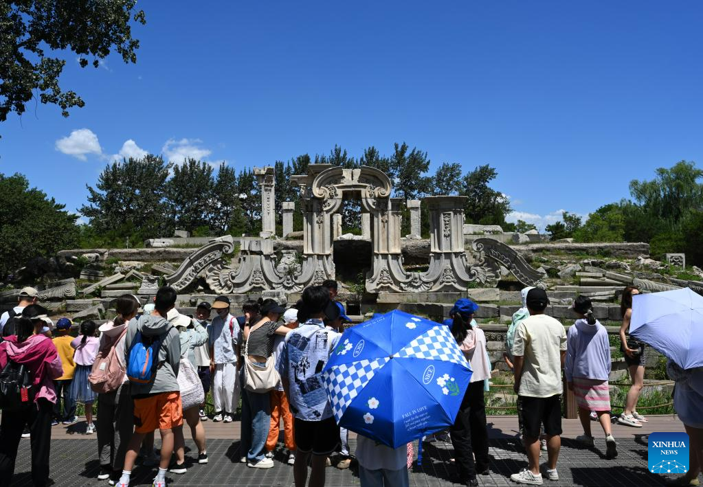 Tourists visit the Yuanmingyuan Park in Beijing, capital of China, July 8, 2023. Beijng is seeing an increasing number of tourists as summer vacation starts across China. (Xinhua/Chen Yehua)