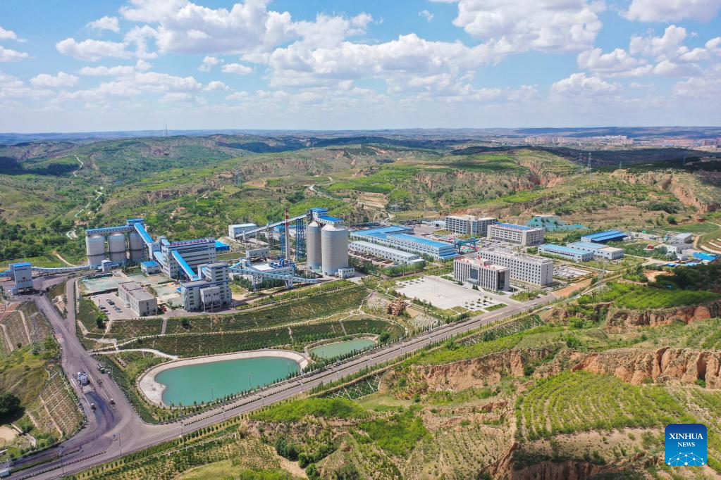 This aerial photo taken on July 8, 2023 shows the Jiutai new material technology corporation in Jungar Banner, north China's Inner Mongolia Autonomous Region. (Xinhua/Liu Lei)