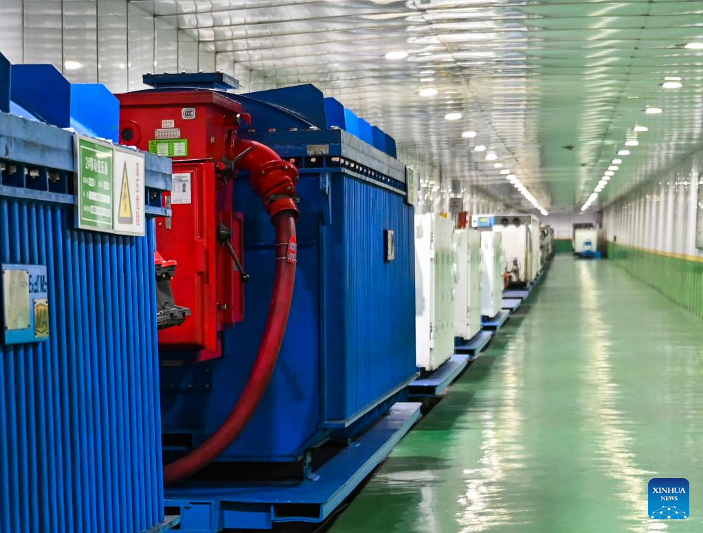 This photo taken on July 8, 2023 shows a power intelligent frequency converter equipment at the Longwanggou Coal Mine of China Datang Corporation Ltd. in Jungar Banner, north China's Inner Mongolia Autonomous Region. (Xinhua/Liu Lei)