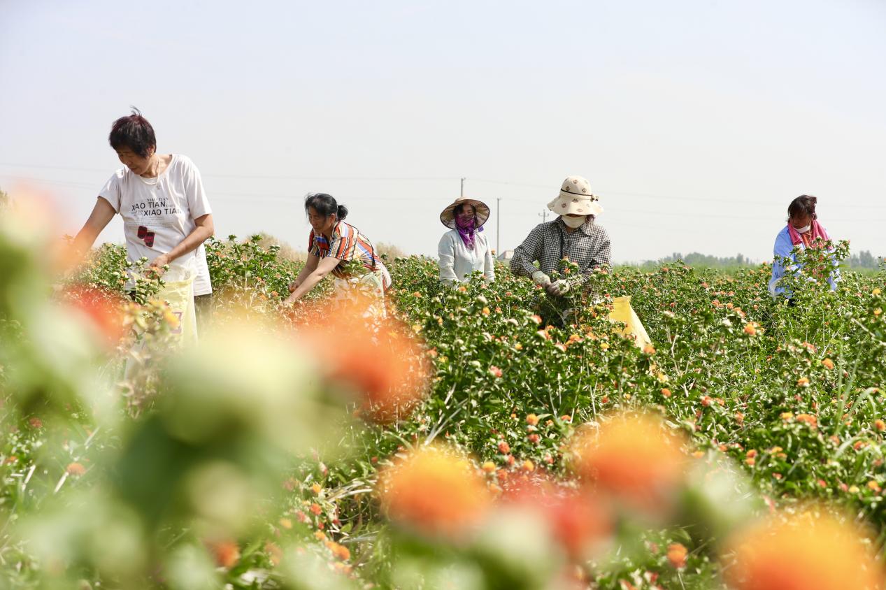 Villagers have been busy harvesting safflowers at a planting base in Yubohai village, Dongguang county, Cangzhou city, north China's Hebei Province.