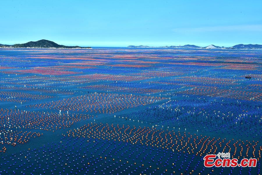 Aerial view of an abalone breeding farm in Lianjiang County, east China's Fujian Province. (Photo: China News Service/Zhang Bin)