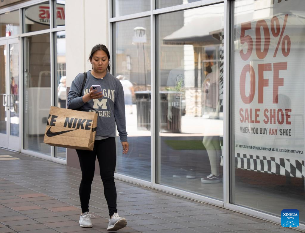 People shop at an Outlets in San Francisco Bay Area, California, the United States, July 12, 2023. The U.S. dollar suffered substantial losses on Wednesday after the U.S. consumer price index (CPI) for June showed the rate of inflation slowing to the lowest level since 2021. (Photo by Li Jianguo/Xinhua)