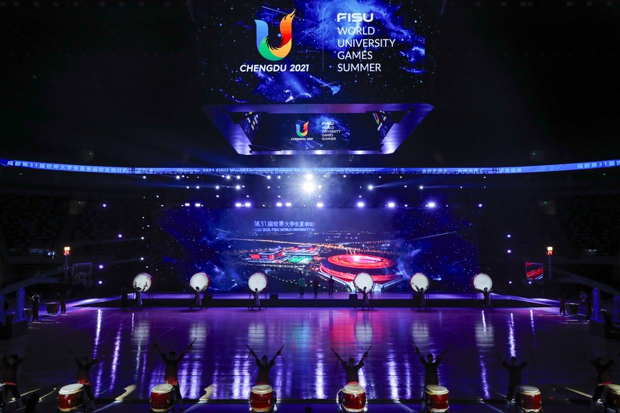 Chengdu hosts a ceremony to mark the 30-day countdown to the 31st FISU Summer World University Games on June 28, 2023. (Xinhua/Shen Bohan)