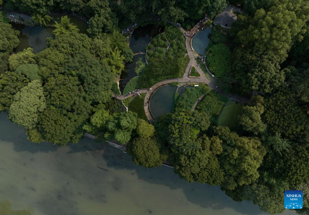 This aerial photo taken on June 23, 2023 shows the Jinjiang park along the Jinjiang River in Chengdu, capital of southwest China's Sichuan Province. (Xinhua/Jiang Hongjing)