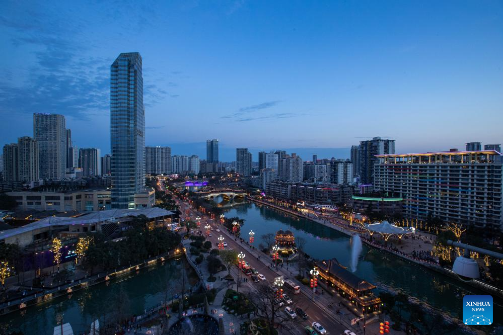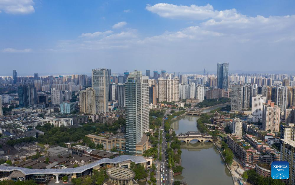 This aerial photo taken on June 9, 2023 shows the Jinjiang River in Chengdu, capital of southwest China's Sichuan Province. (Xinhua/Jiang Hongjing)