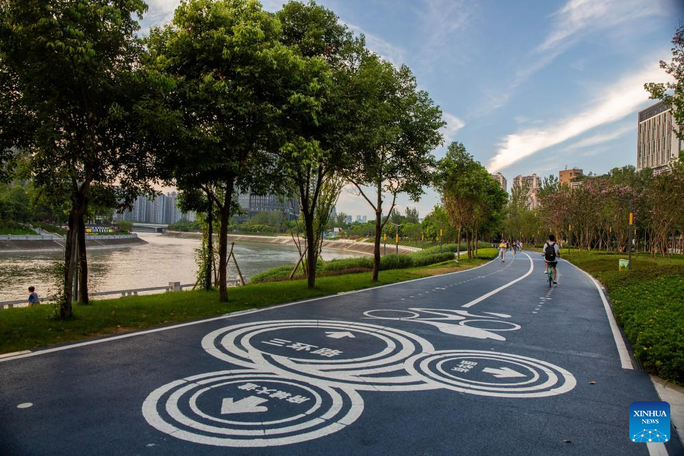 People run on a leisure path along the Jinjiang River in Chengdu, capital of southwest China's Sichuan Province, Aug. 20, 2022. (Xinhua)