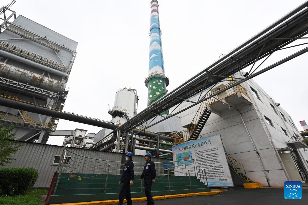 This photo taken on July 12, 2023 shows a sintering flue gas desulfurization and denitrification project of the New Tianjin Steel Group in Tianjin, north China. To achieve carbon reduction and improve energy efficiency, Tianjin has pushed forward the comprehensive transformation of its iron and steel industry chain in recent years. Iron and steel producers are encouraged to reform their energy mix, upgrade technology and develop hydrogen-fuelled transportation.