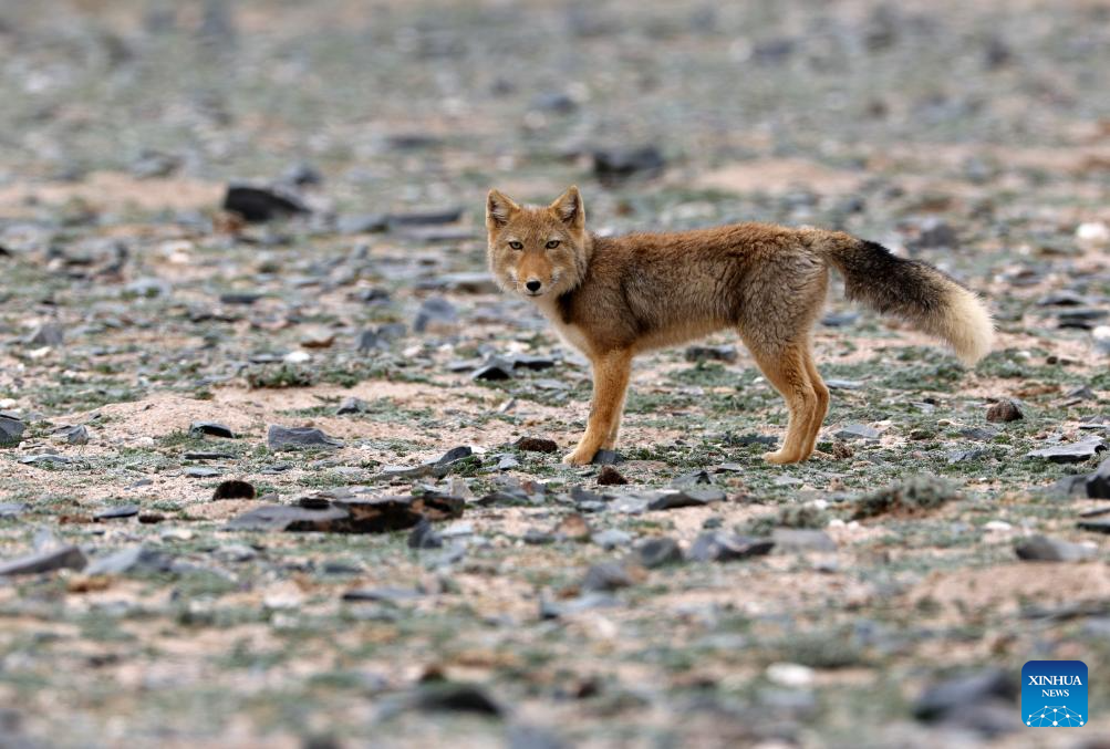This photo taken on July 5, 2023 shows a Tibetan fox in the Altun Mountains National Nature Reserve in northwest China's Xinjiang Uygur Autonomous Region. (Xinhua/Wang Peng)