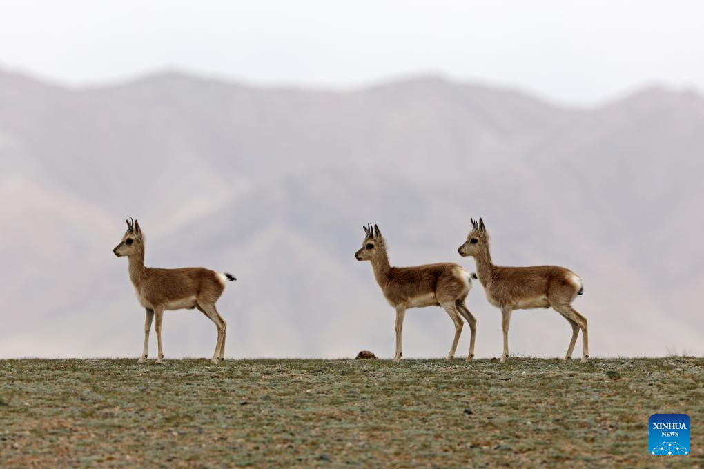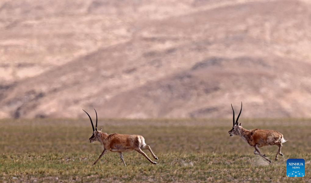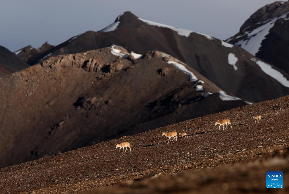 This photo taken on July 1, 2023 shows Tibetan gazelles in the Altun Mountains National Nature Reserve in northwest China's Xinjiang Uygur Autonomous Region. (Xinhua/Cai Yang)