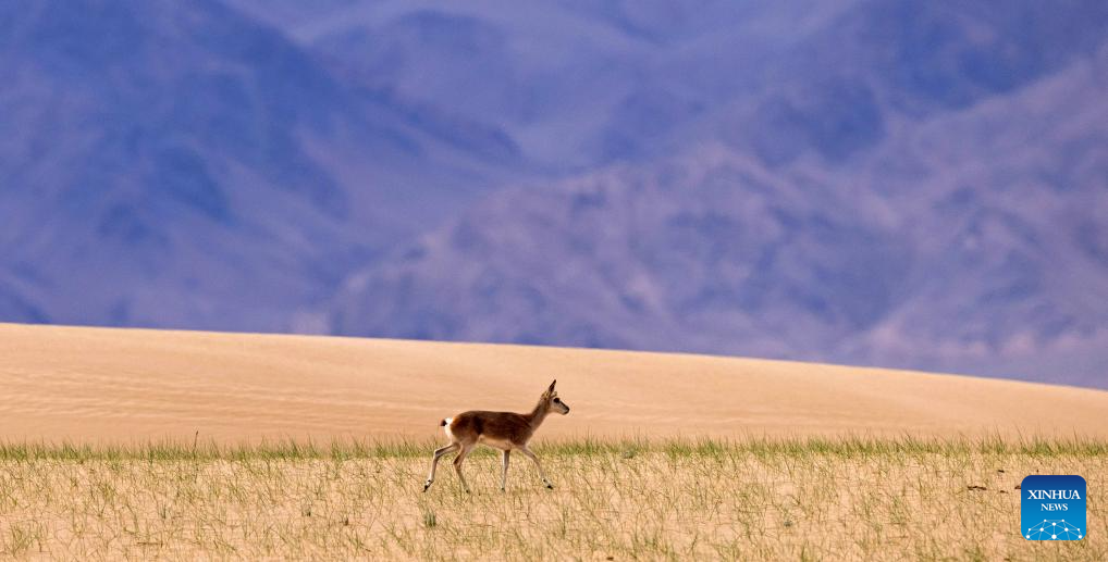 This photo taken on July 1, 2023 shows a Tibetan gazelle in the Altun Mountains National Nature Reserve in northwest China's Xinjiang Uygur Autonomous Region. (Xinhua/Cai Yang)