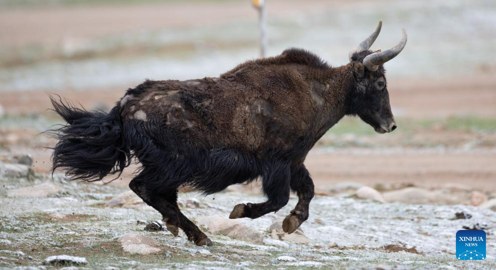 This photo taken on July 2, 2023 shows a wild yak in the Altun Mountains National Nature Reserve in northwest China's Xinjiang Uygur Autonomous Region. (Xinhua/Cai Yang)