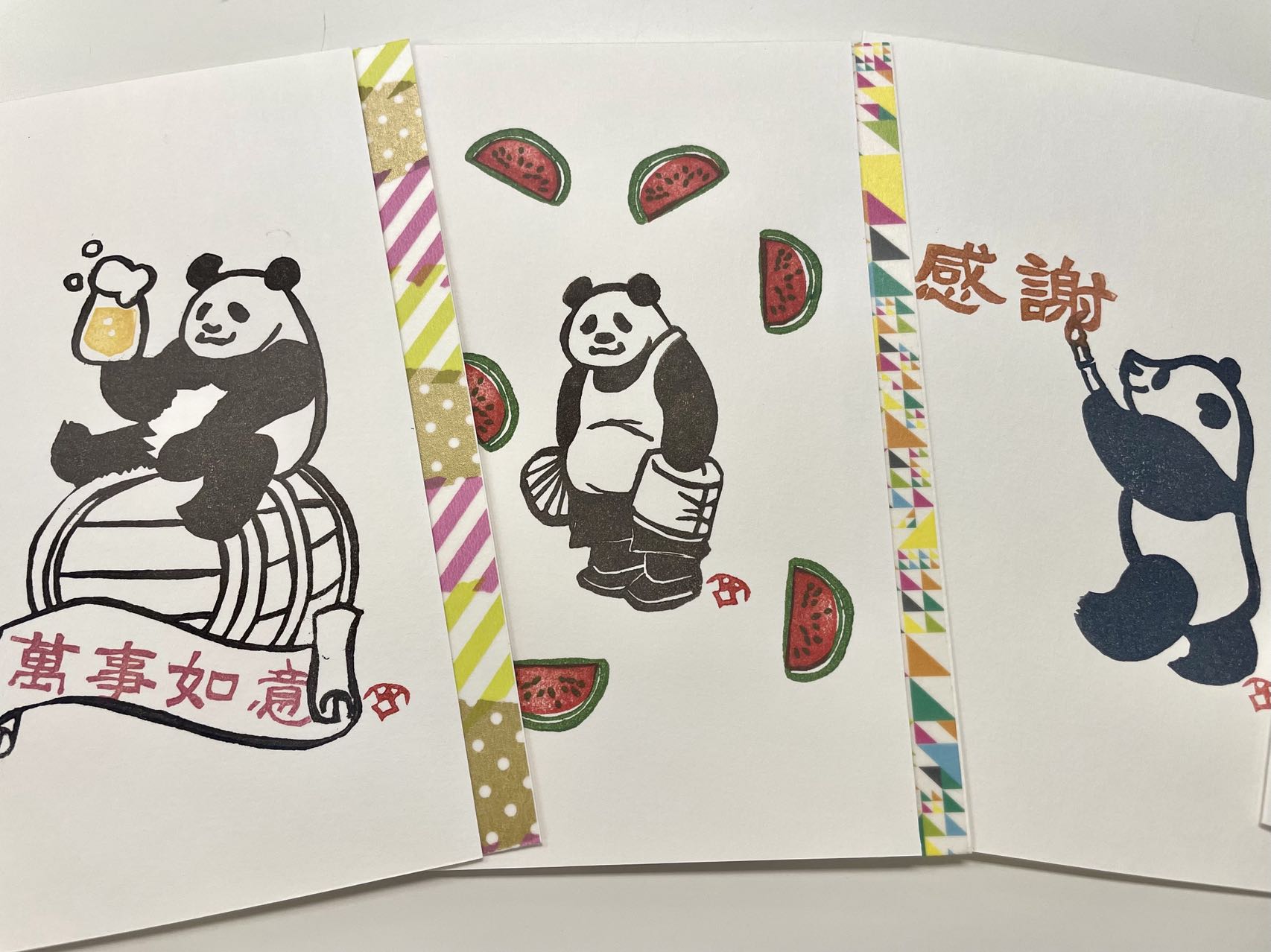 Exquisite panda illustrations designed by renowned Japanese artist Yoshiko Tebido. (People's Daily Online/Wu Chaolan)